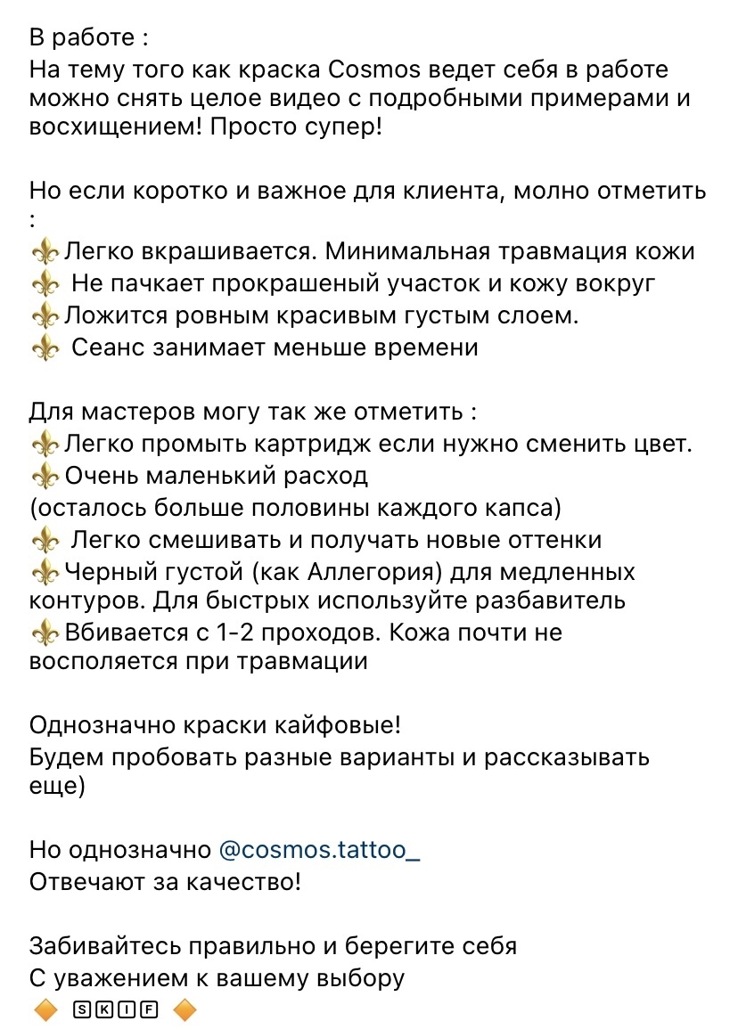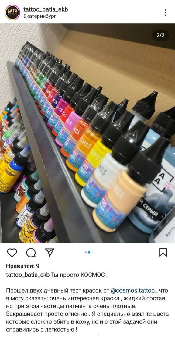 Краска для тату, предлагаемая брендом, соответствует высоким стандартам качества и безопасности, что подтверждается производством в России.