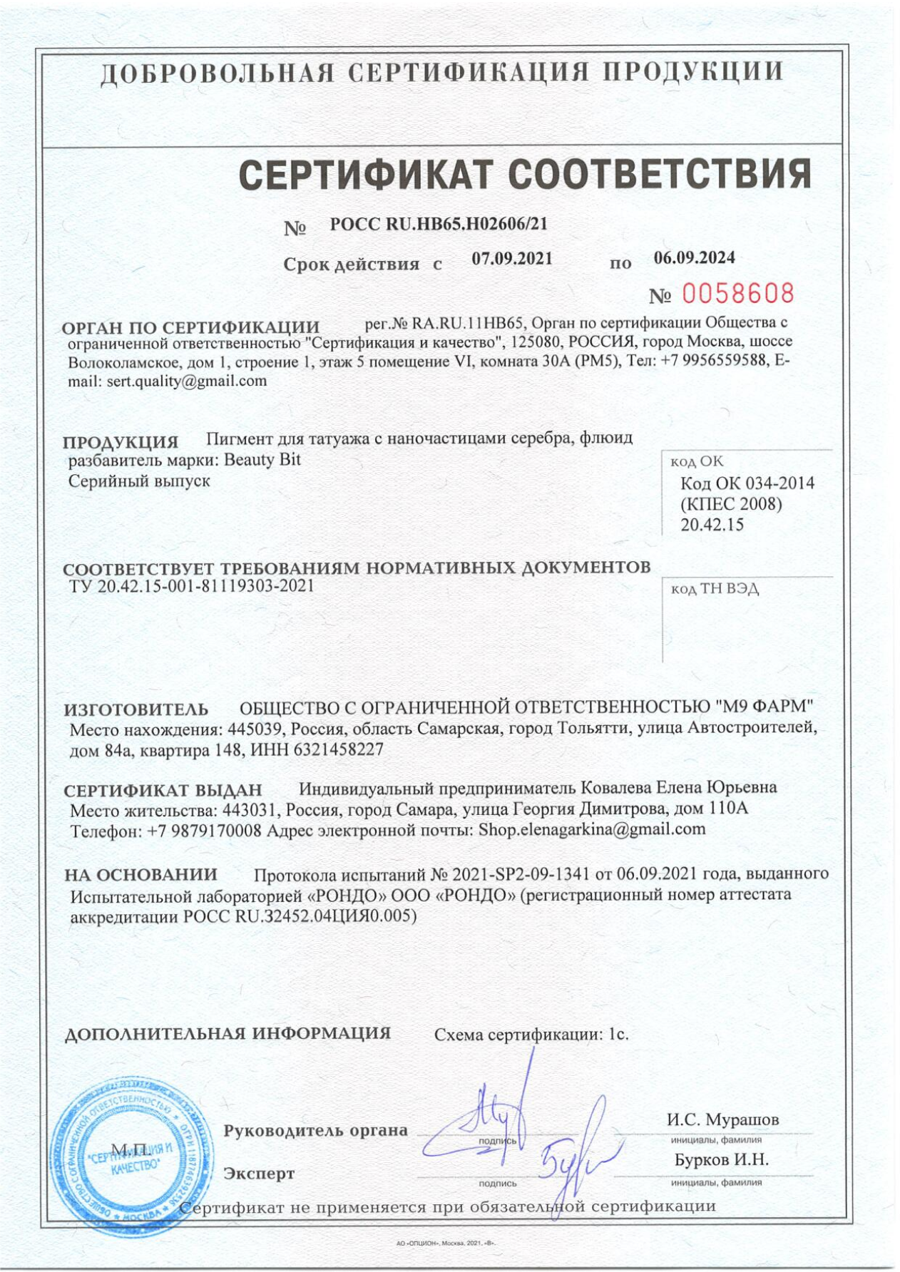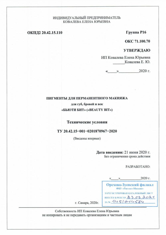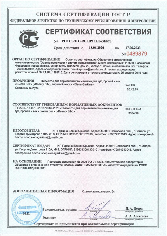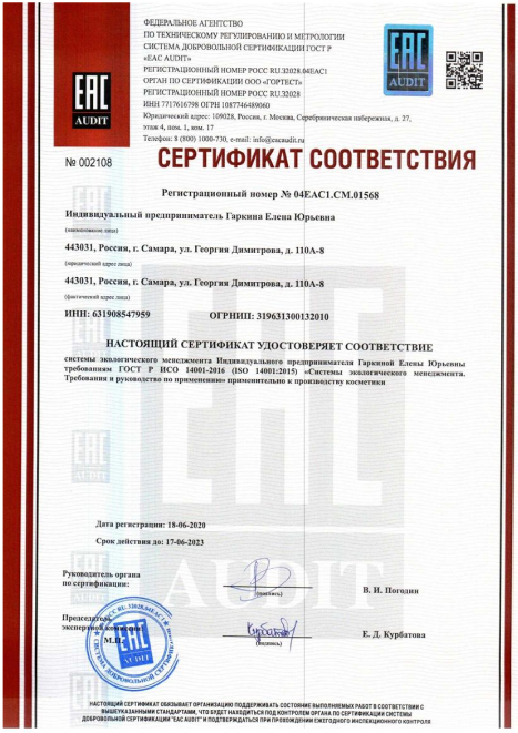 Соответствует техническому регламенту "О безопасной парфюмерно-косметической продукции"